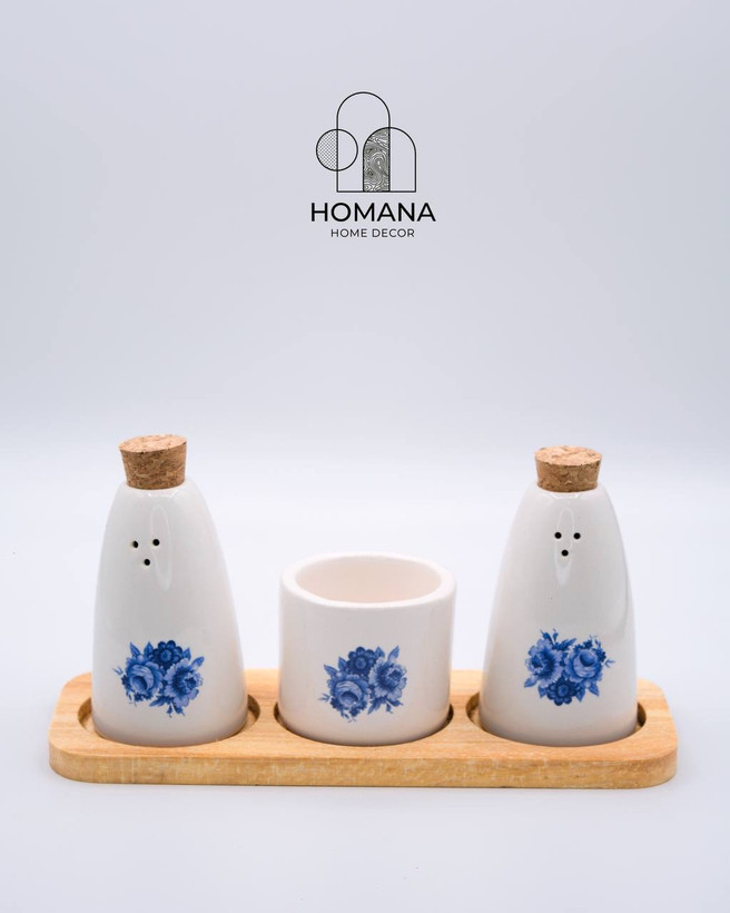 ست نمکدان اتوسا به همراه زیره چوبی جای نمک فلفل خلال دندان