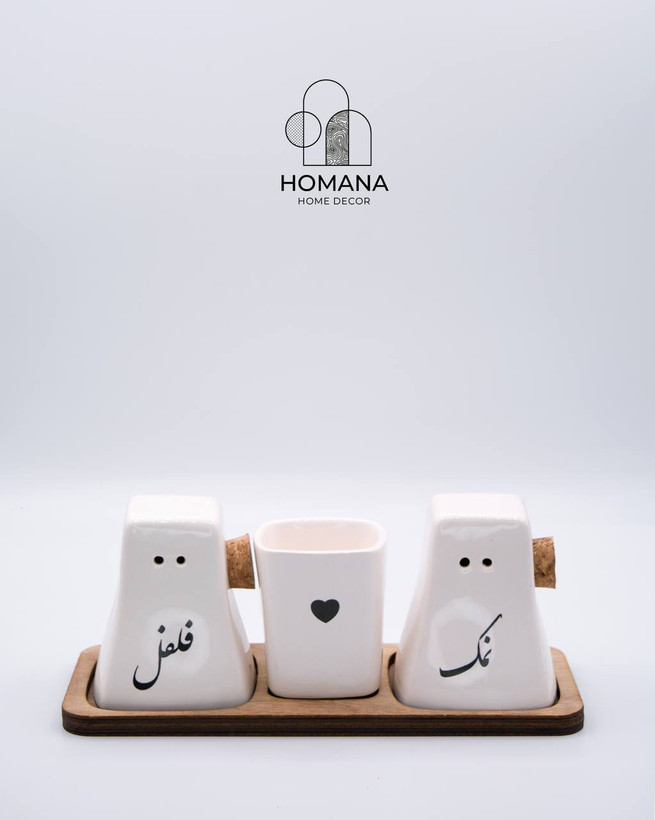 ست نمکدان مربع به همراه زیره چوبی جای نمک فلفل خلال دندان